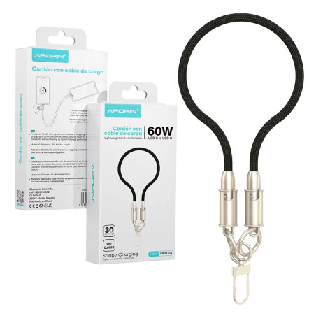 Apokin Cordon-Cable 2en1 60W 30cm de Tipo- C a Tipo- C Negro