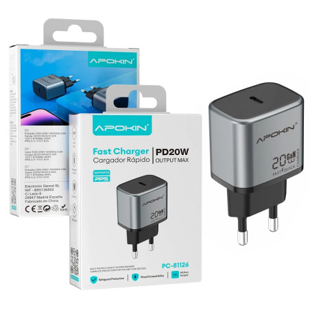 El Cargador APOKIN 81126 combina potencia y seguridad en un tamaño reducido. Diseñado para adaptarse a las necesidades modernas de carga rápida y segura, es una opción confiable para mantener tus dispositivos siempre listos.